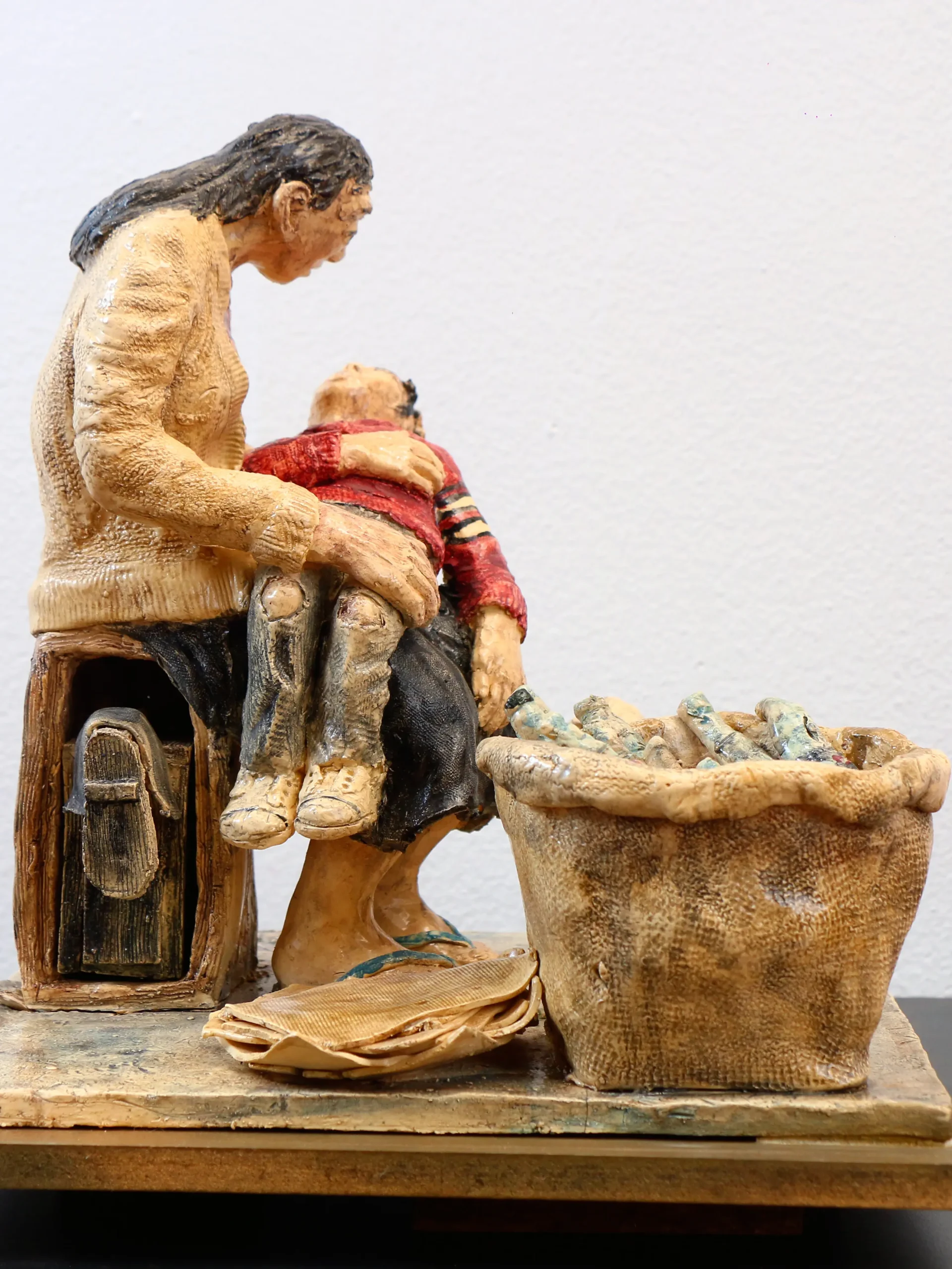 La loza vidriada otorga nobleza a su esfuerzo diario, convirtiendo el trabajo precario en símbolo de resistencia, cuidado y maternidad urbana.
