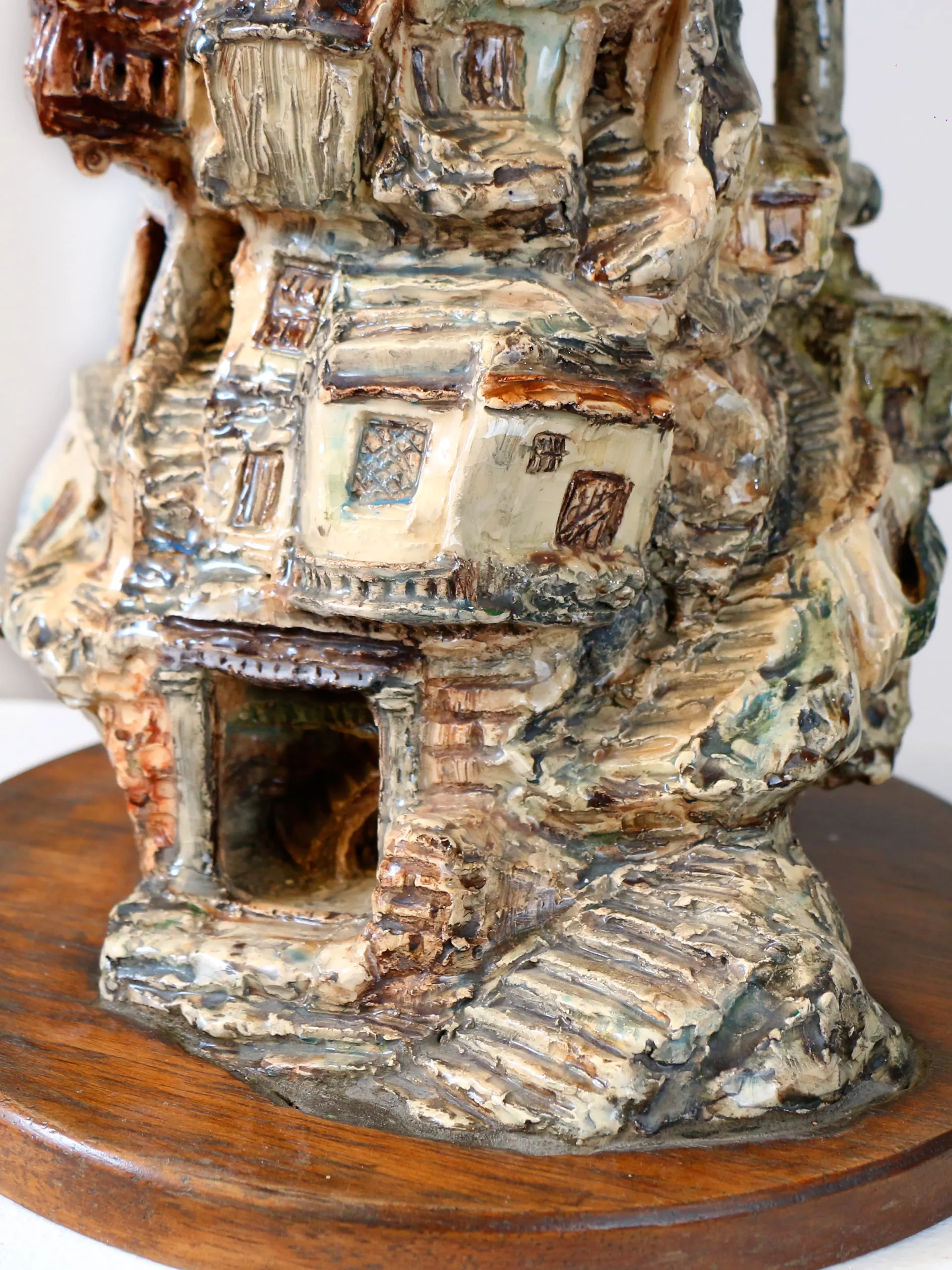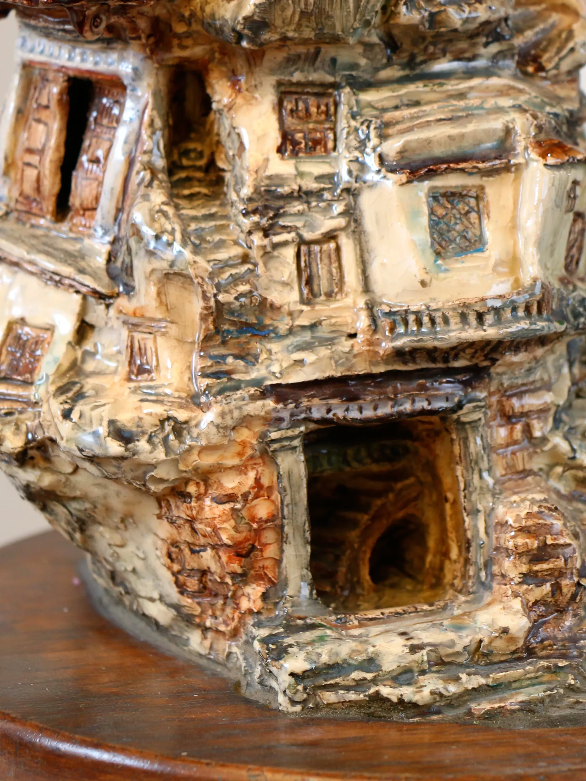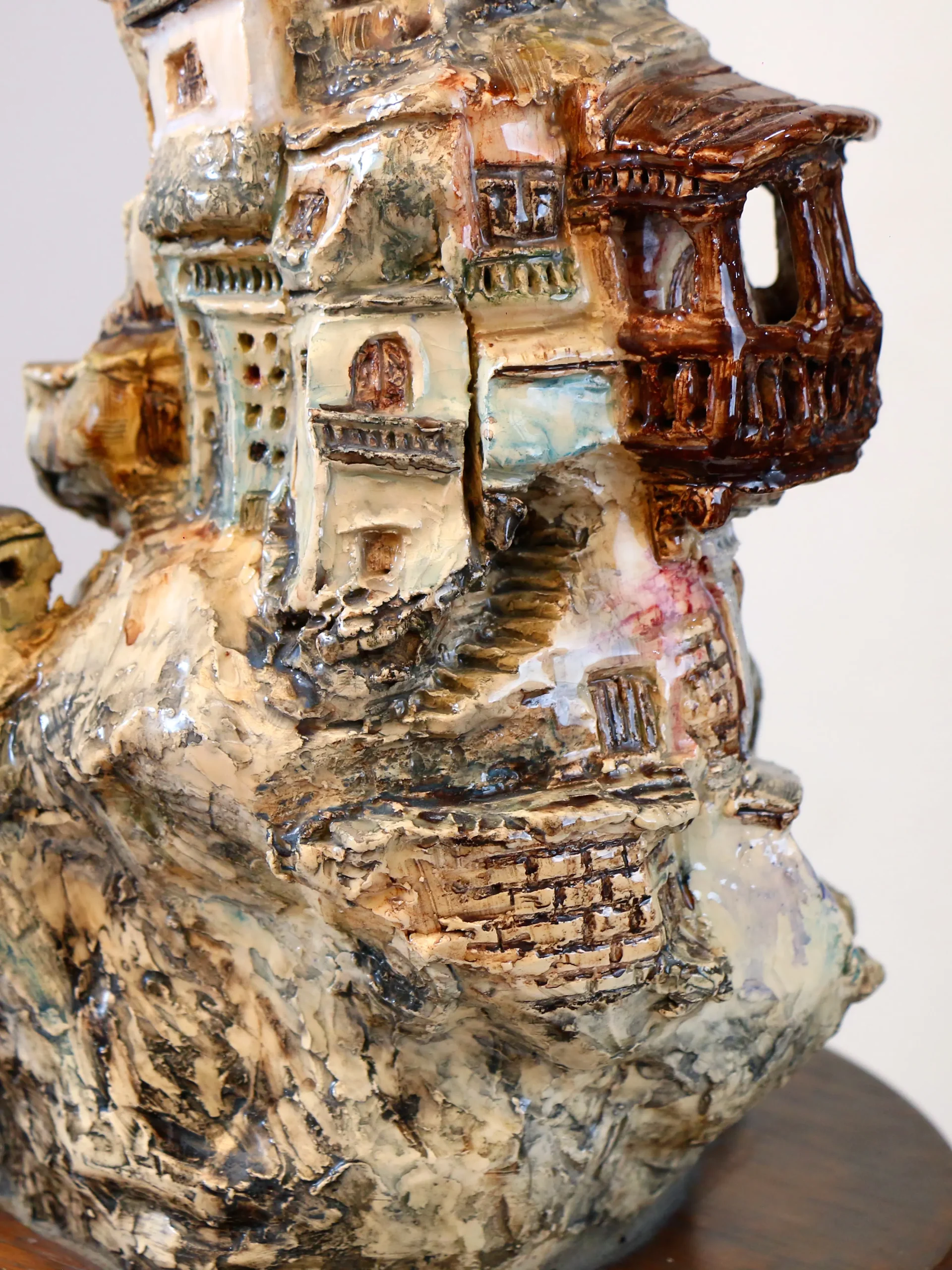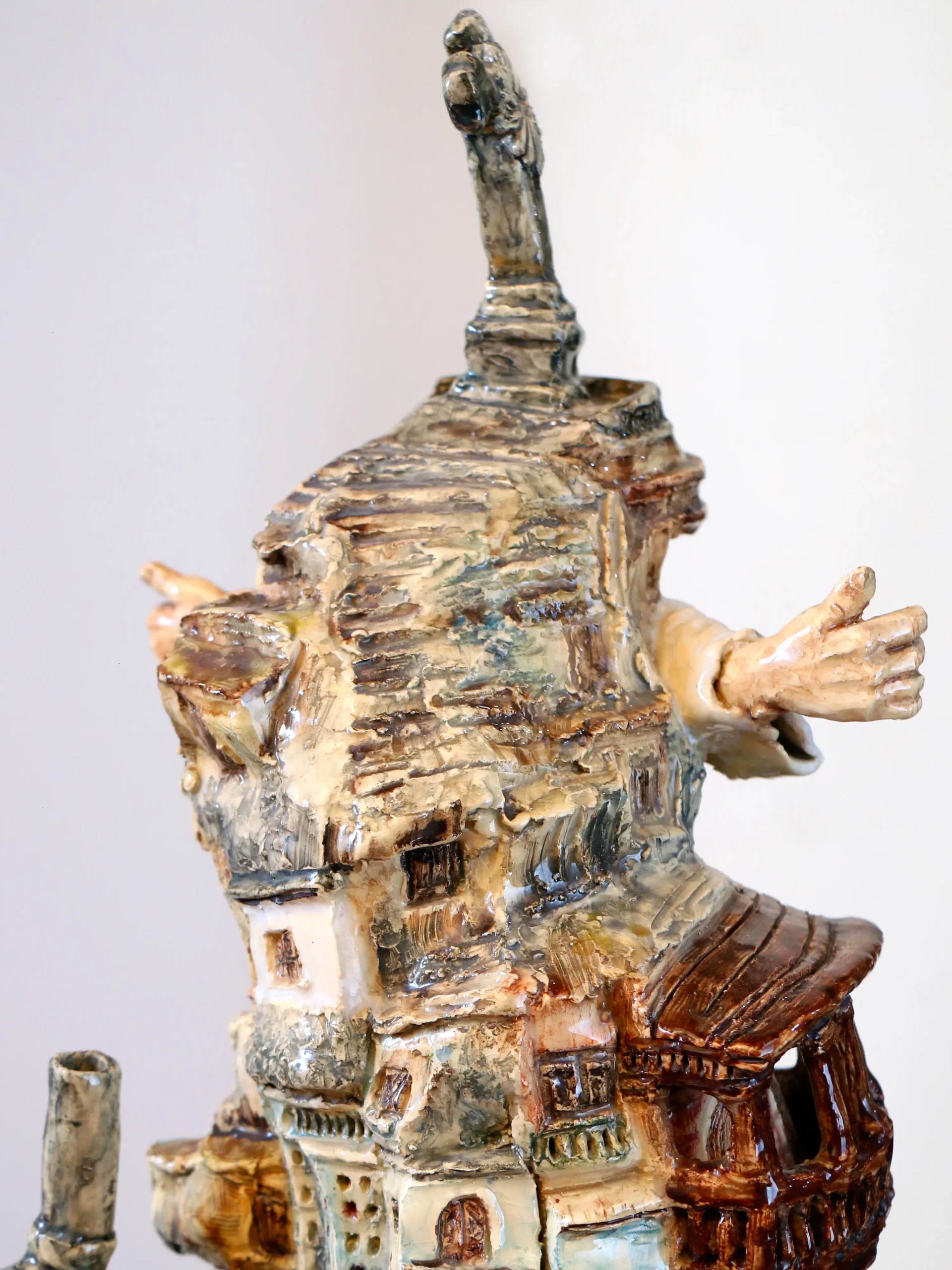 La loza vidriada subraya el carácter teatral y simbólico de esta escena, que rinde homenaje al habla como forma de poder y memoria.
