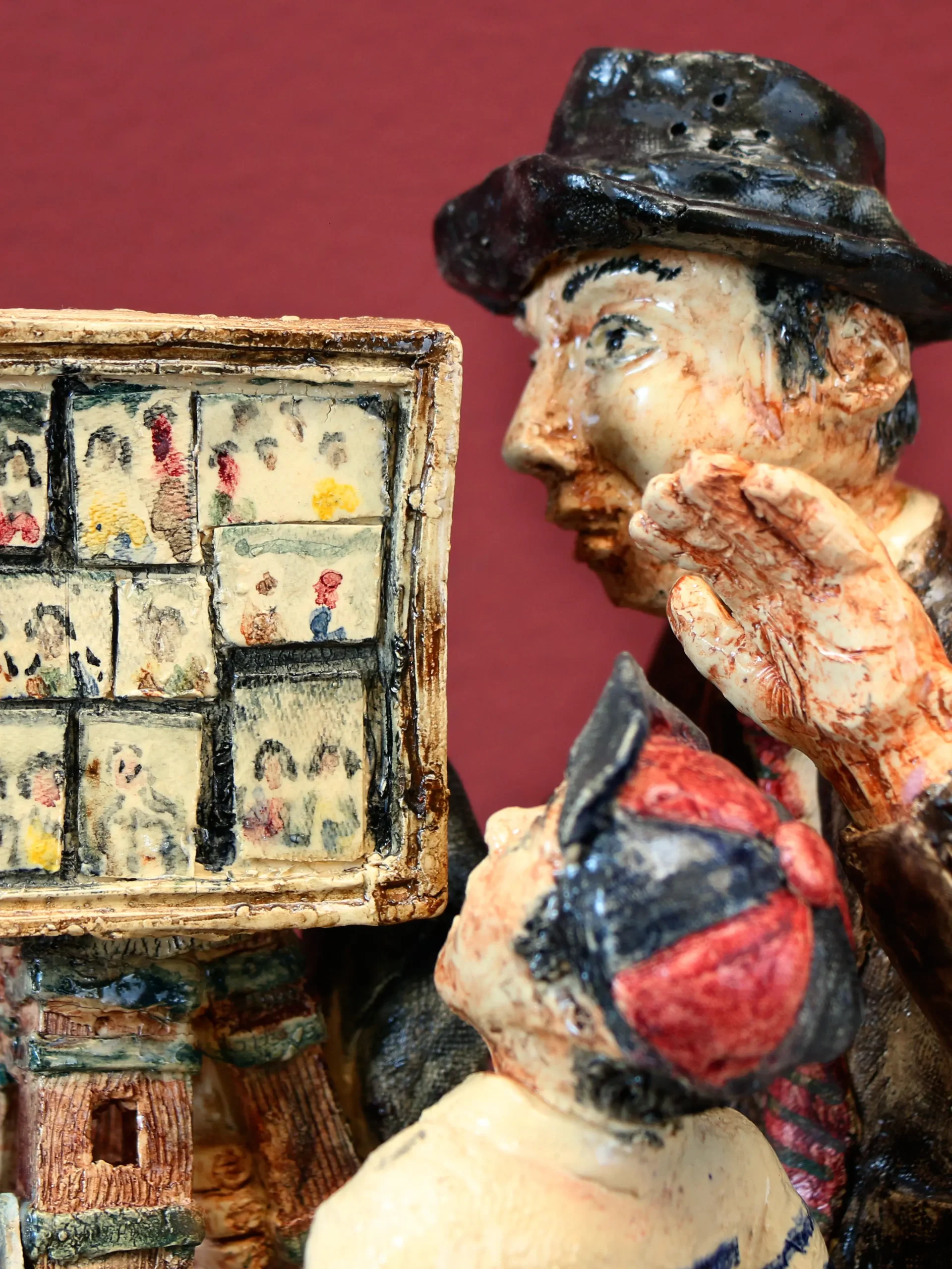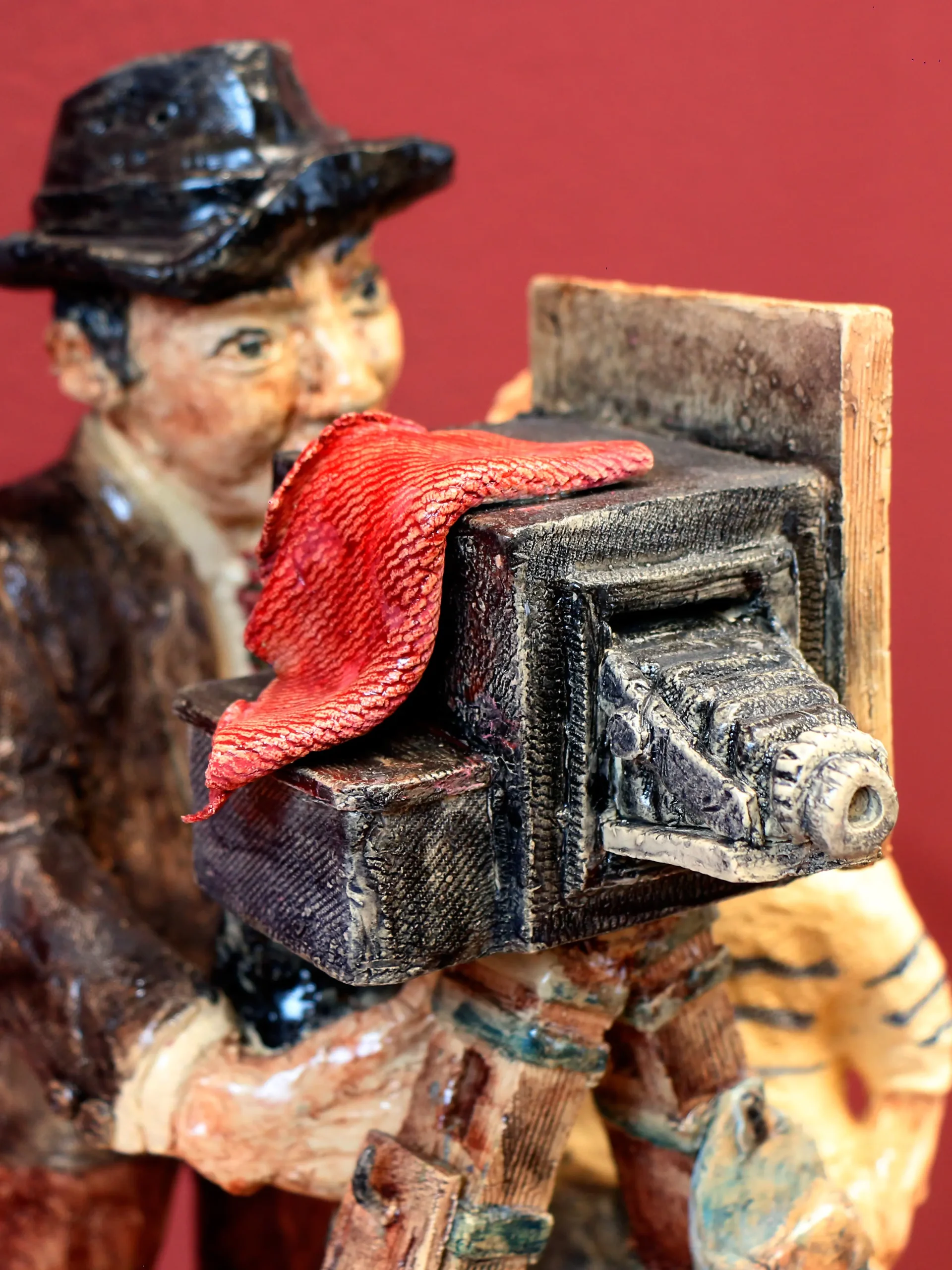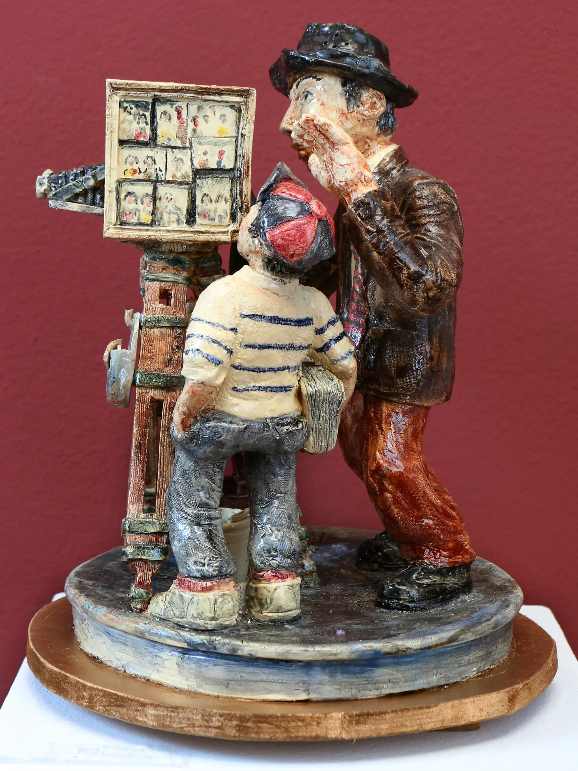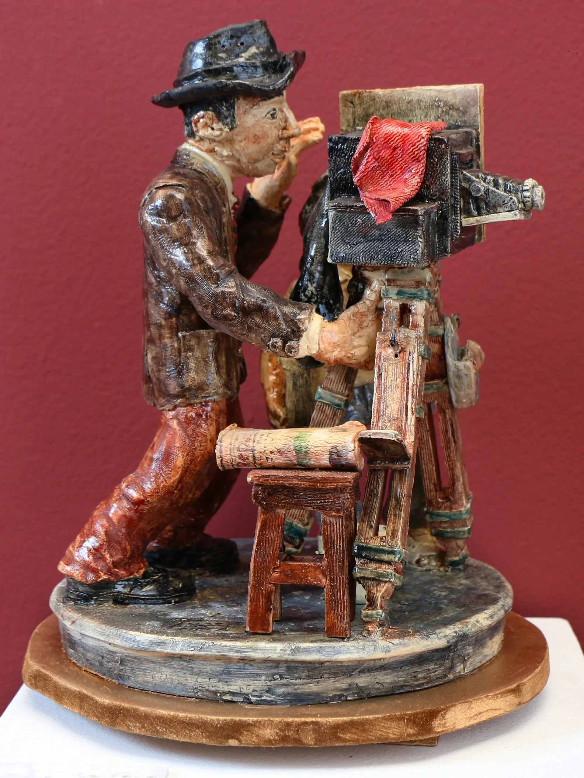 «Una miradita para el recuerdo» captura la nostalgia de los antiguos fotógrafos callejeros, guardianes de memorias en blanco y negro. La figura del niño curioso contrasta con la solemnidad del fotógrafo, evocando la admiración por la magia de capturar el tiempo.